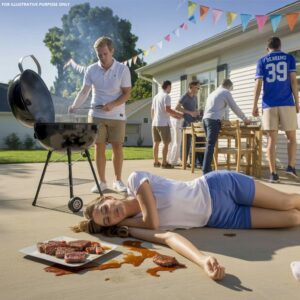 A Woman Lay On The Ground At A Birthday Party While Her Husband Acted Calm