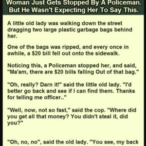 A little old lady was walking down the street dragging two large plastic garbage bags behind her. One of the bags was ripped, and every once in…