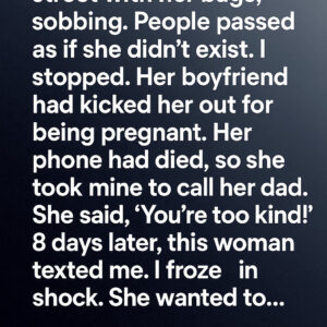 I saw a woman on the street with her bags, sobbing. People passed as if she didn’t exist. I stopped. Her boyfriend had kicked her out for…