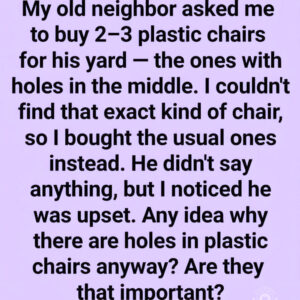 My old neighbor asked me to buy 2-3 plastic chairs for his yard—the ones with holes in the middle. I couldn’t find that exact kind of chair,…