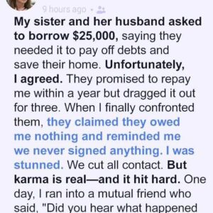 My sister and her husband asked to borrow $25,000, insisting they needed it to pay off debts and save their home. I hesitated—money and family rarely mix—but…