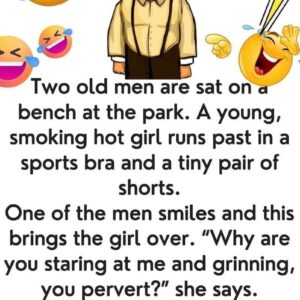 Two old men are sat on a bench at the park. A young, smoking hot girl runs past in a sports bra and a tiny pair of…