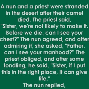 A nun and a priest found themselves stranded in the desert after their camel passed away. The priest, sensing the gravity of the moment, looked at the…