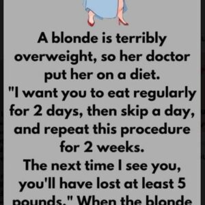A blonde is terribly overweight, so her doctor put her on a diet. “I want you to eat regularly for 2 days, then skip a day, and…