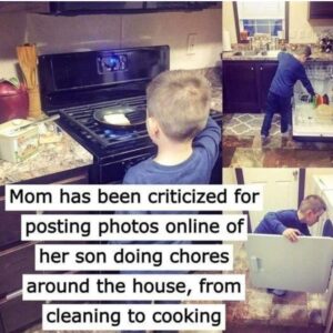 Mom faced backlash for sharing photos of her child doing household chores like cooking and cleaning on the internet. Although she believed she was imparting life lessons…