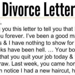 Dear Wife, I’m writing you this letter to tell you that I’m leaving you for good. I’ve been a good man to you in our 7 years…