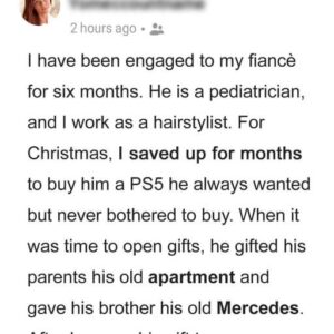 A woman left Christmas with her future in-laws early after seeing her fiancè’s gift to her. She was appalled by his gift after she made an effort…