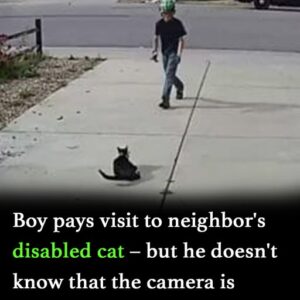 Young boy walks up to a disabled cat, unaware a camera is filming everything