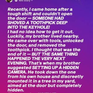 Recently, I came home after a tough shift and couldn’t open the door – someone had shoved a toothpick deep into the keyhole! I had no idea…