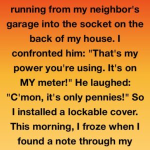 I found an extension lead running from my neighbor’s garage into the socket on the back of my house. I confronted him: “That’s my power you’re using….
