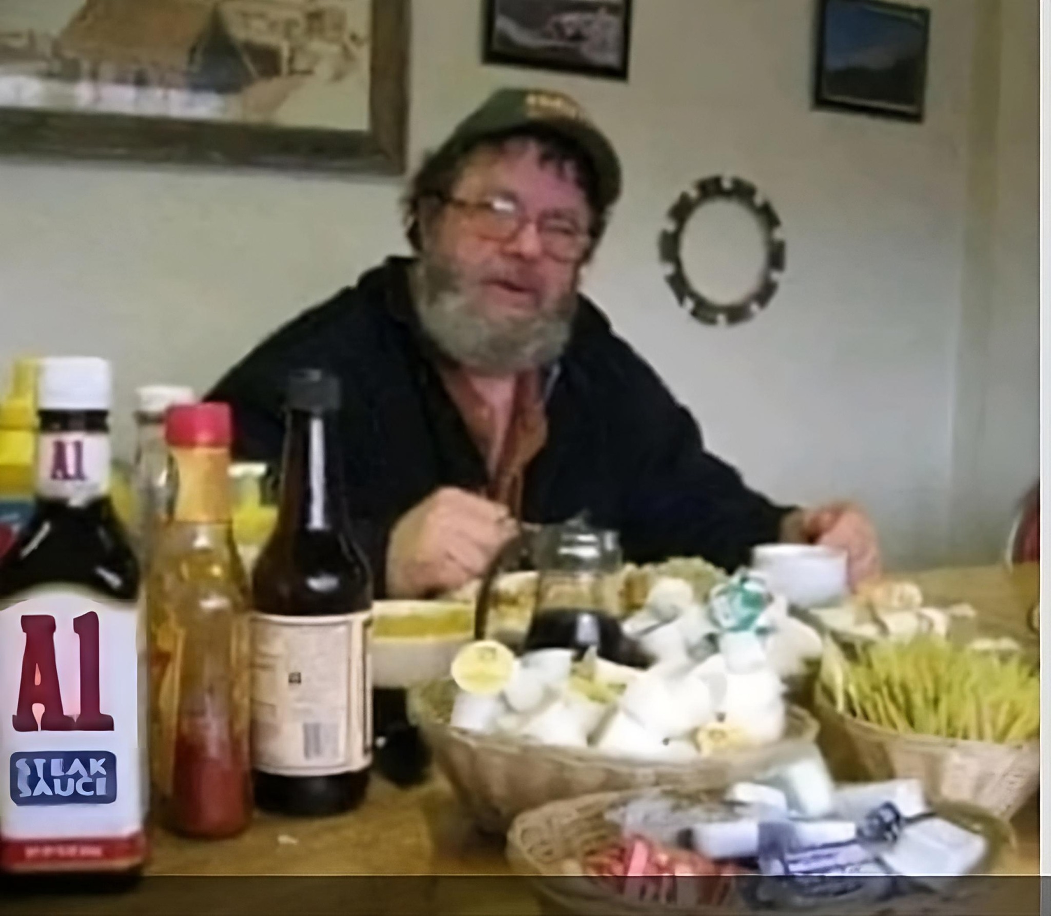 As they passed the old man, the first biker pushed his cigarette into the old man’s pie, then laughed and took a seat at the counter.