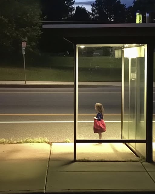 The first evening I was unpacking, I noticed her—a little girl standing at the bus stop across the street. She couldn’t have been older than eight, wearing an oversized red jacket and clutching a red bag to her chest as if it contained her entire world. Her small, still figure caught my eye. I assumed she was waiting for someone.