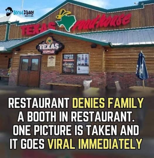 A family was denied the booth at a Texas Roadhouse restaurant although it wasn’t taken at the moment they entered the place. When they walked passed the booth and asked to be seated there, the server said it had already been reserved for someone special.They weren’t happy with the response as they wanted more comfortable seats rather than the set of hard chairs the server gave them so they tried to convince her to give them booth, but the response was the same…..