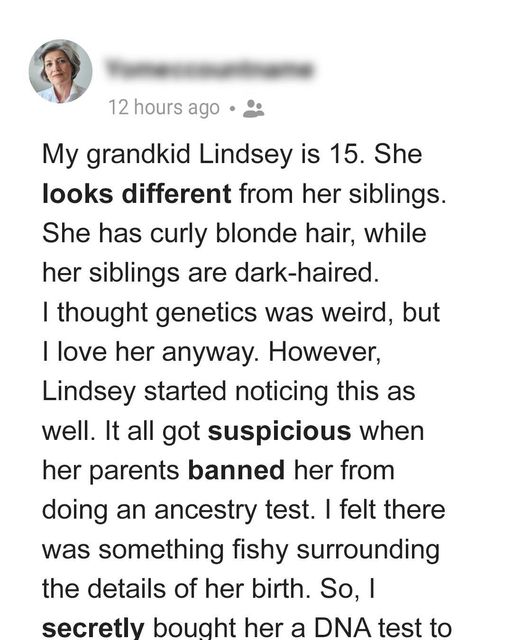 The DNA test results exposed a significant family secret: Lindsey and her siblings did not share the same mother. It revealed that the grandmother’s son had fathered Lindsey with someone else, and her biological mother had given her up.
