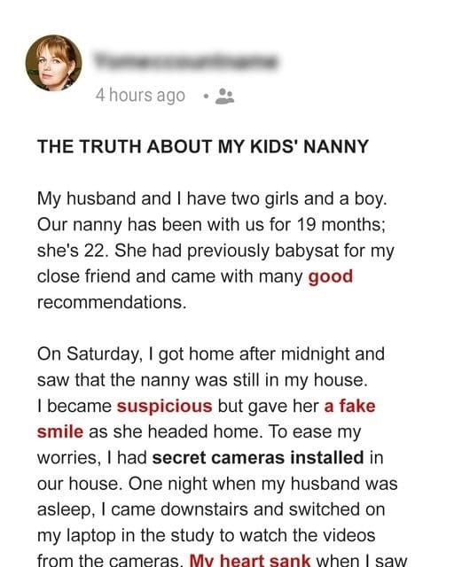 In addition to watching the family on weekends and occasionally during the workday, the nanny accompanied them on trips to Hawaii, Florida, and Mexico. The mother was pleased with the nanny’s care for her kids, but she started to worry about other behaviors.