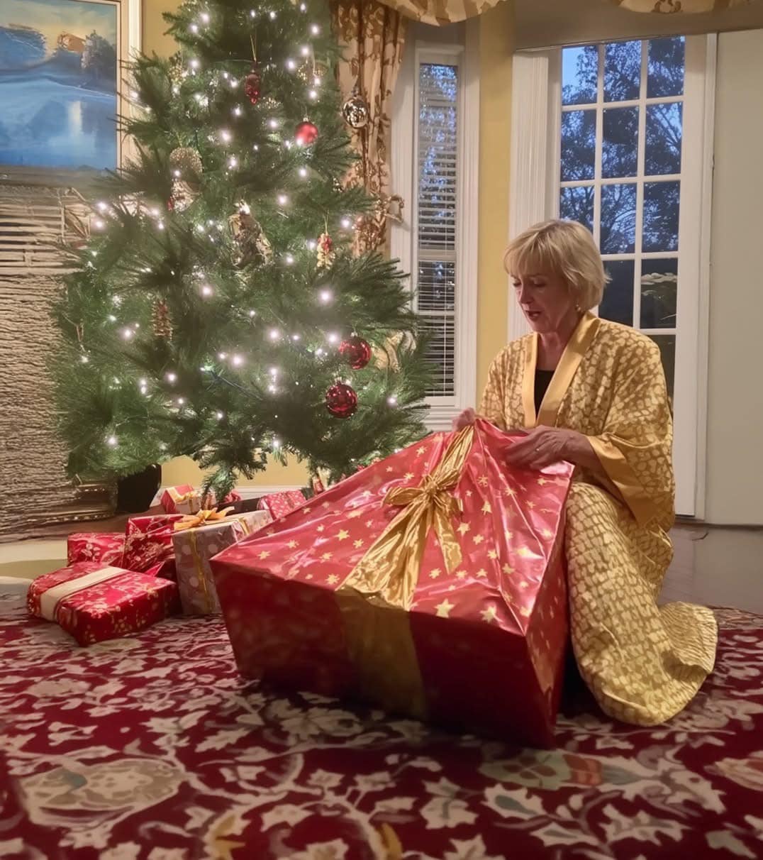“Anna,” he said, holding out a box wrapped in gold foil with a red velvet bow. “I have something really special for you this year, love.”