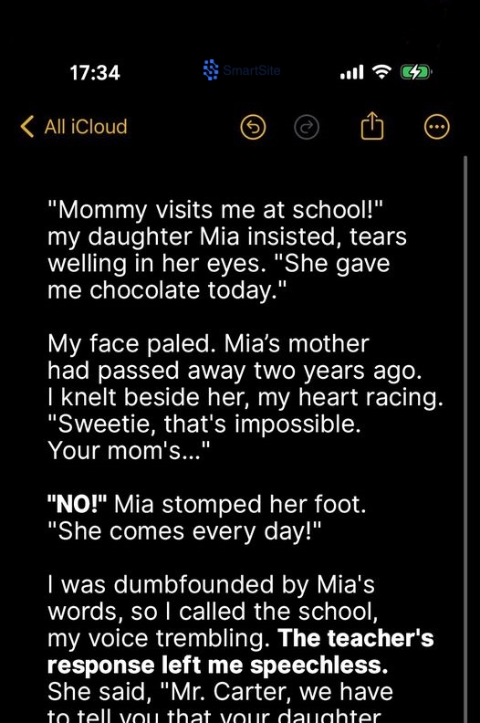 When Mia first told me that her late mother had been visiting her at school, I dismissed it as a child’s way of coping with grief. But when she started coming home with chocolates I hadn’t packed and drawing pictures of her mother with uncanny accuracy, I realized something far beyond my understanding was happening.