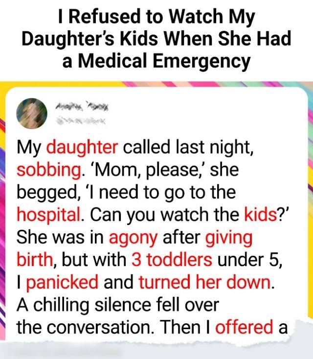 My daughter called last night, sobbing. “Mom, please,” she begged, “I need to go to the hospital. Can you watch the kids?”