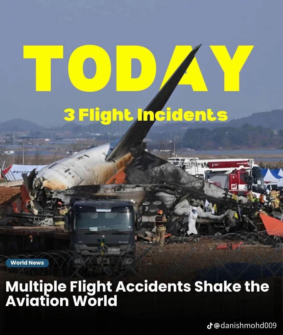 A Jeju Air passenger aircraft crashed and erupted in flames at Muan Airport, South Korea, on December 29, 2024, resulting in at least 85 fatalities. The incident occurred when the aircraft’s front landing gear reportedly failed to deploy during landing, causing the plane to skid off the runway and colliding with a concrete fence.