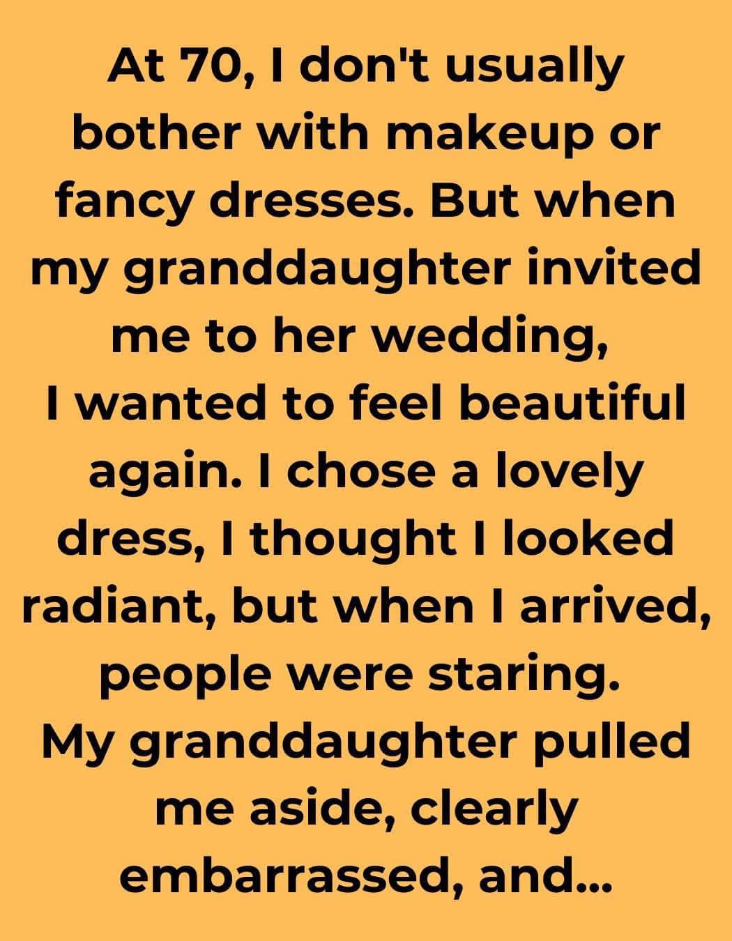 Imagine that after making every effort to look stunning for your granddaughter’s wedding, you discover that she is ashamed of your appearance.