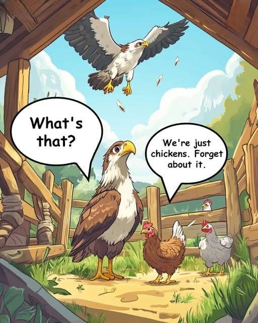 “That is an eagle,” came the simple reply from the chicken, dismissing the question as quickly as it was posed. “They are the kings of the sky, but you and I—we are just chickens. That is all there is to it.”