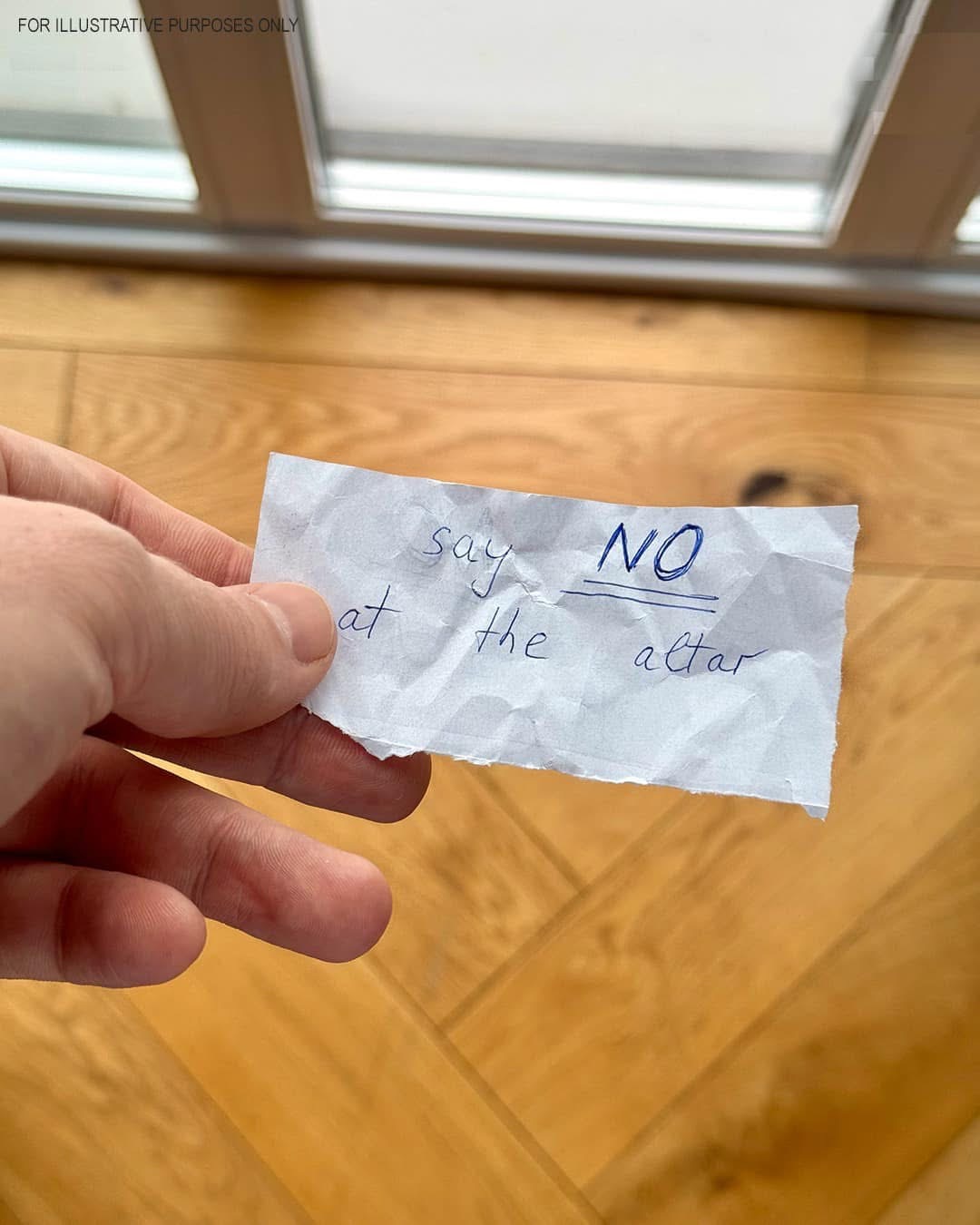 At first, I thought it was a small, playful gesture—a quirky reminder of her unique style. I unfolded the paper with a mix of curiosity and mild amusement. But as I read the five stark words—”Say no at the altar”—my world seemed to shatter for a split second. My mind raced, questioning everything I had assumed about this day. Had I misheard her? Was this a joke? But the sincerity in her eyes told me otherwise.