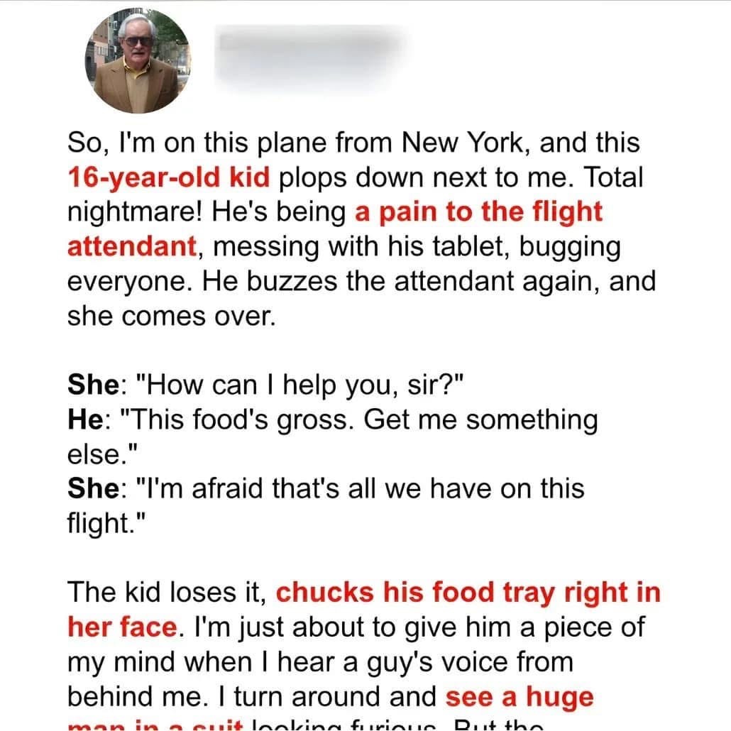 The passengers stared in disbelief as Andrew’s insults echoed through the cabin. Then, a voice from behind him spoke up—a voice that sent a chill down his spine.