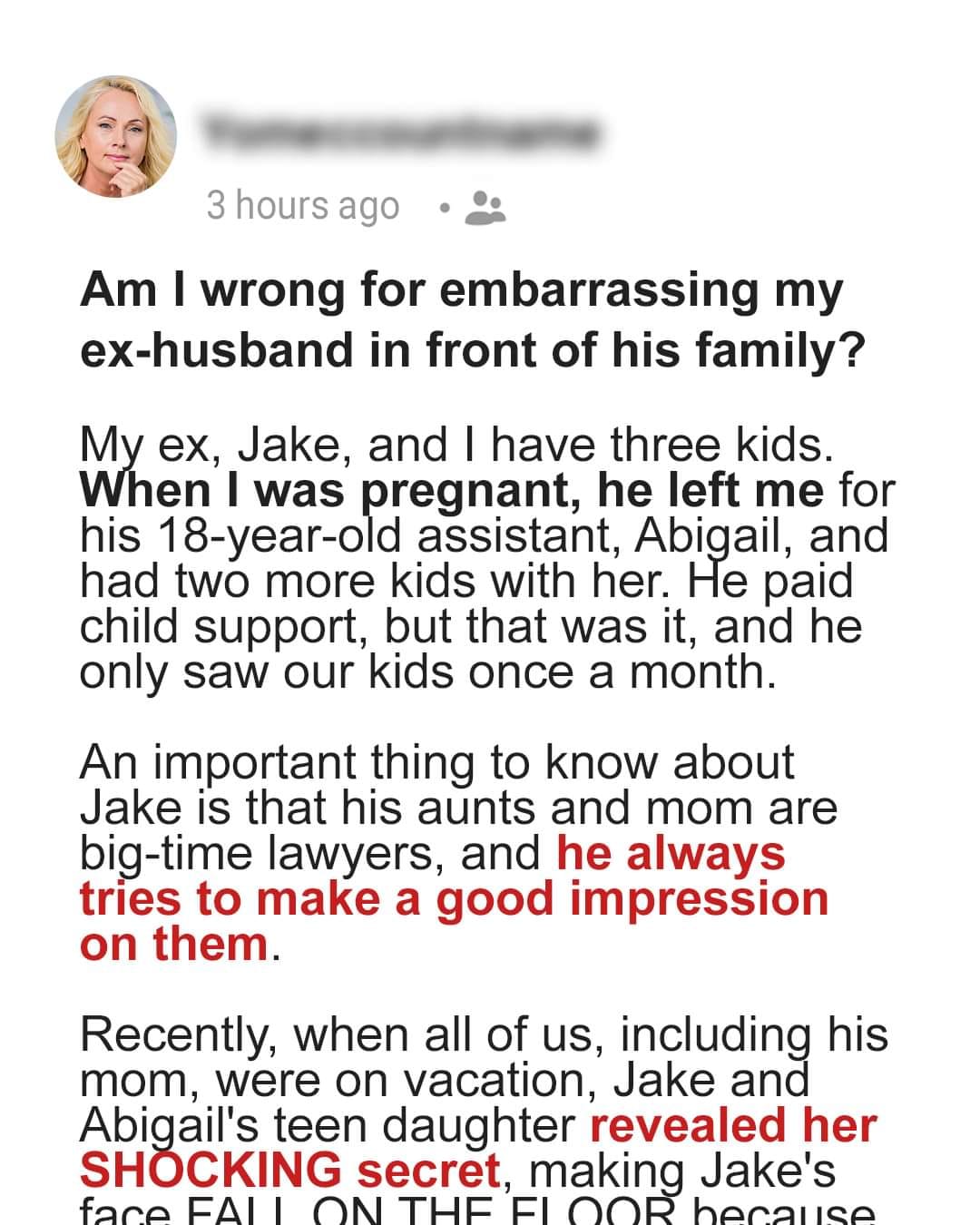 2 / Am I Wrong for Embarrassing My Ex-husband in Front of His Family?