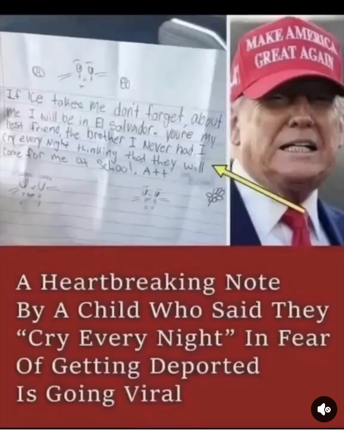 which quickly went viral. The note, shared on social media, reads: “If ICE takes me, I’ll be in El Salvador. You’re my best friend, like the brother I never had. I cry every night because I’m scared they’ll come to my school and take me.” Accompanied by tearful drawings, the note struck a chord with people worldwide, amassing millions of views and sparking an outpouring of emotion.