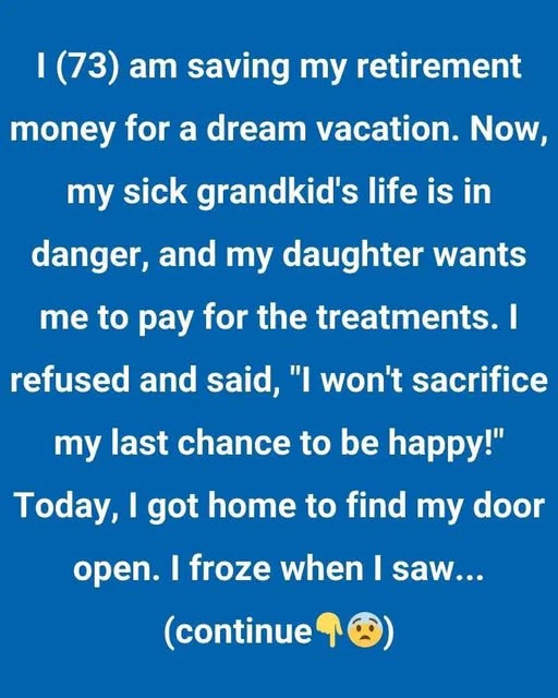I am 73 years old and have been saving my retirement funds for a dream vacation. However, my granddaughter is critically ill, and my daughter has asked me to help cover the costs of her treatment. When I refused, I told her, “I won’t give up my last chance at happiness!”