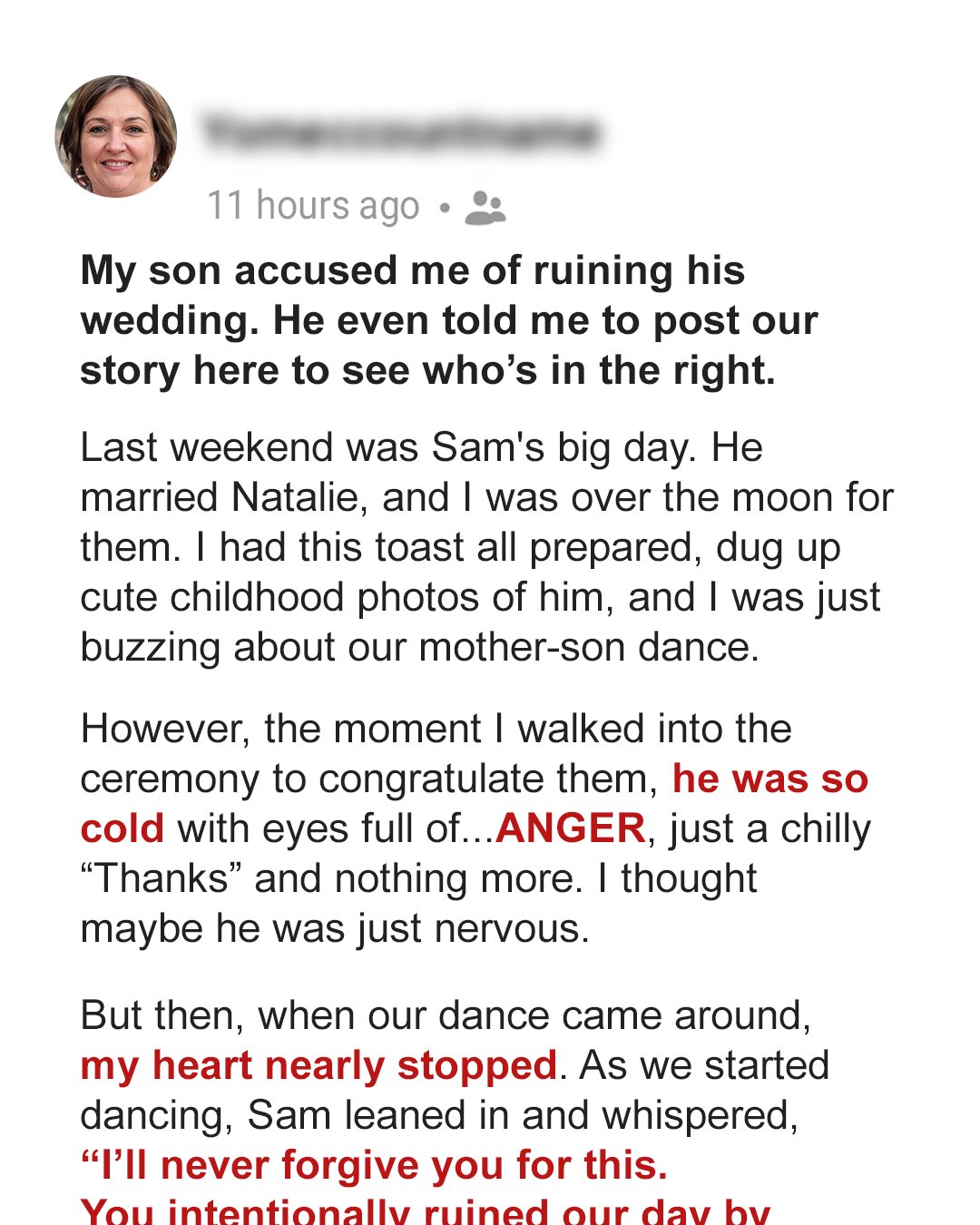 At the wedding, when the moment for our mother-son dance arrived, I reached for Sam, my heart a mix of joy and nostalgia. But as we danced, his stiffness was undeniable. The warmth I expected was absent; instead, a cold tension gripped me.