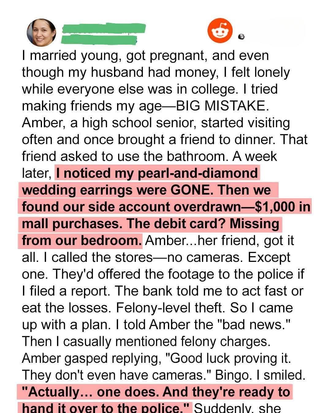 When Amber brought her quiet friend Melanie to dinner, I thought I was just making new friends. But Melanie got “lost” on the way to the bathroom, and days later, my wedding earrings were gone—along with $1,000 from our bank account. The debit card was missing, too. I knew instantly: we’d been robbed.