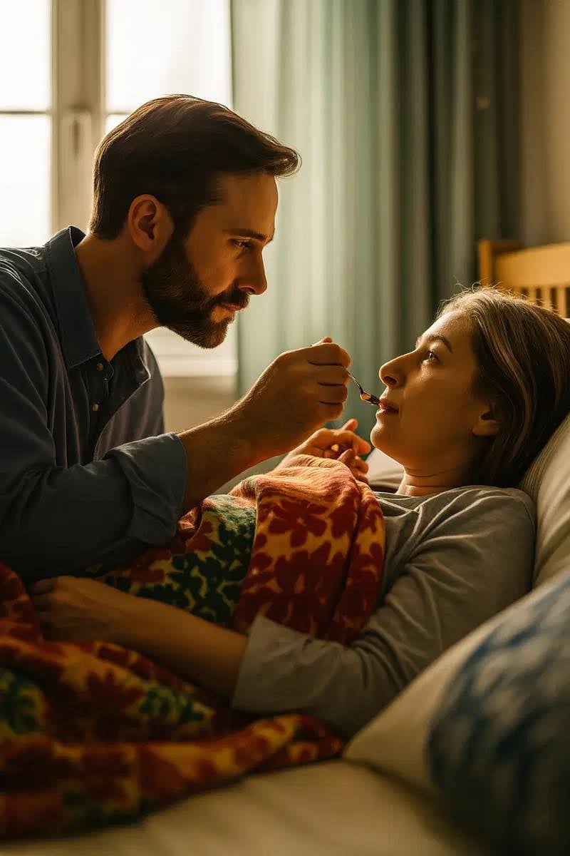 For five long years, I spent more time by my wife’s hospital bedside than I had at my own. I spoon-fed her, changed her bandages, wiped every drop of sweat from her body. People called me stupid, but I believed in the sacred bond of marriage. Until one afternoon—I forgot my purse at home and came home earlier than usual. The moment I opened the door to our room… I froze. The world I had protected for years crumbled in a single heartbeat.