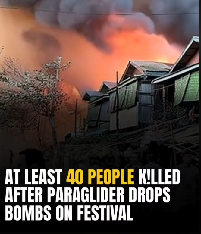 A paraglider dropped bombs on a celebration in Myanmar, killing at least forty people.