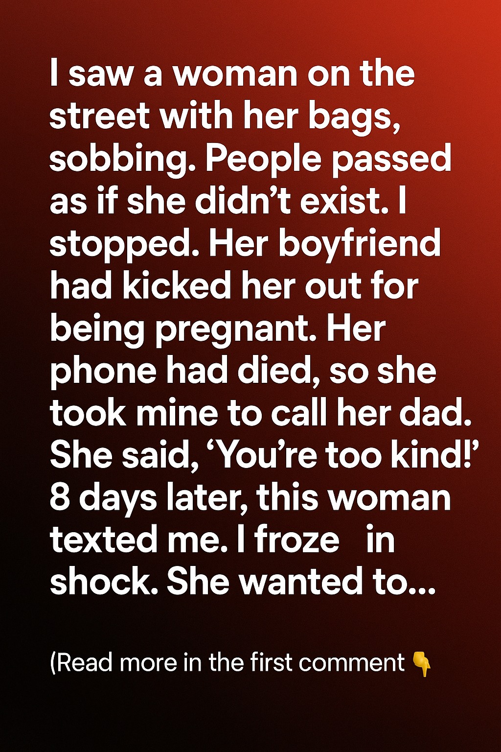 I saw a woman on the street with her bags, sobbing. People passed as if she didn’t exist. I stopped. Her boyfriend had kicked her out for being pregnant. Her phone had died, so she took mine to call her dad. She said, ‘You’re too kind!’ 8 days later, this woman texted me. I froze in shock. She wanted to… thank me again. Her message wasn’t long, but every word carried warmth. She told me that in the moment I stopped for her, she felt seen, safe, and human again. She said her dad came within thirty minutes that day and took her home. She was now staying with her family, resting, and focusing on her baby’s health. I remembered the fear in her eyes when we met, and now her message was filled with hope. It felt like watching a flower lift its head after heavy rain.