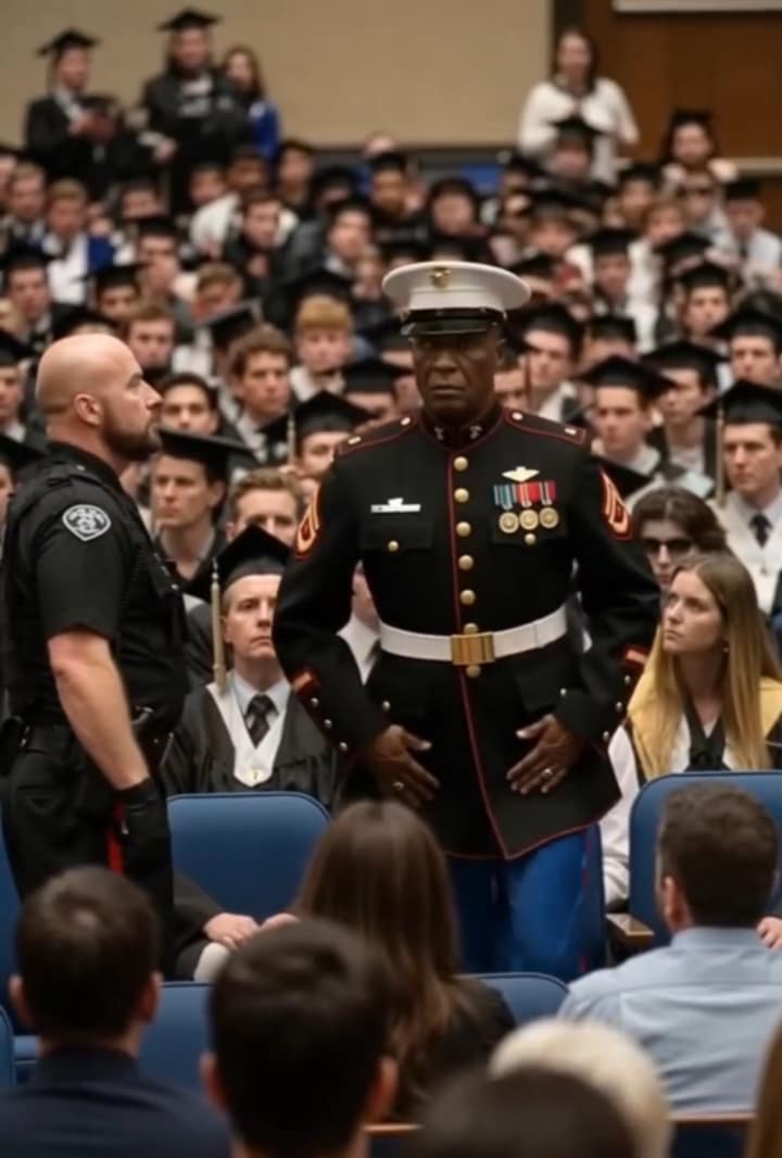 The crowd, realizing what was happening, applauded. The principal quickly intervened and welcomed Solomon back to his seat with sincere gratitude for his service. When Tyran walked the stage and saw his father standing tall, his eyes shone with pride only years of love could build. Afterward, the young men gathered around Solomon, thanking him for setting an example of strength and humility. That day, Solomon learned that sometimes honor isn’t loud — it simply stands, and the world recognizes it.