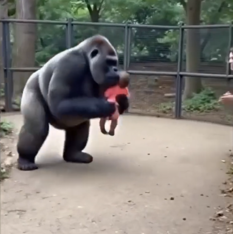 Eyewitnesses describe the moment as brief but unforgettable. The gorilla’s calm demeanor and nurturing approach contrasted sharply with the rising panic outside its enclosure, inspiring tears and applause from onlookers.