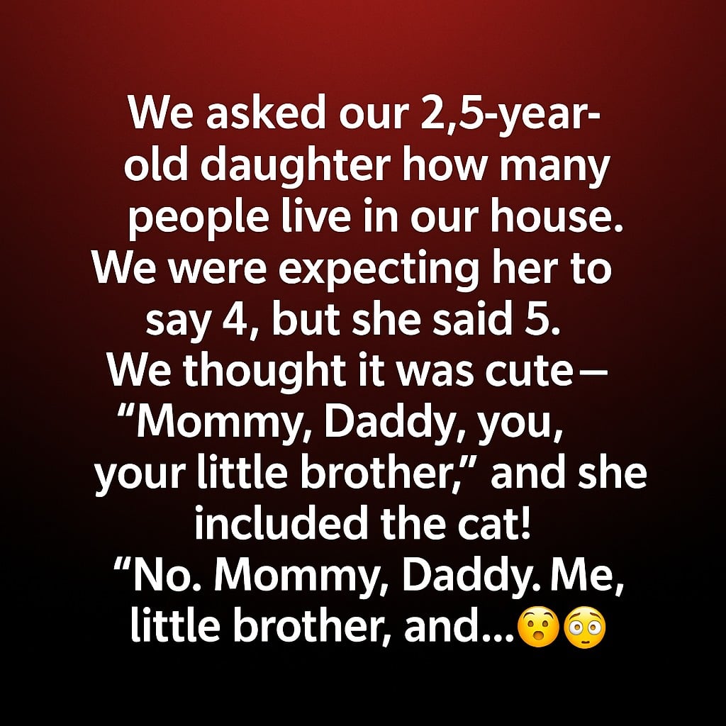 We asked our 2.5-year-old daughter a simple question one evening: “How many people live in our house?” We expected her to say four—me, my husband, her, and her baby brother. Instead, without hesitation, she said, “Five.” We laughed at first, assuming she meant the cat. But she shook her head firmly. “No, Mommy. Daddy. Me. Little brother. And…”