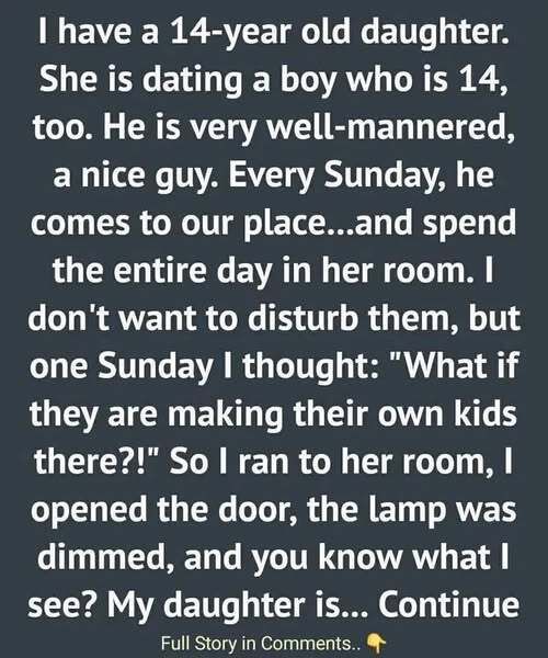 One quiet Sunday afternoon, I heard laughter coming from behind her closed bedroom door. It was soft, familiar, and punctuated by the kind of giggles teenagers use when they’re trying not to be too loud. Her boyfriend was over — also fourteen — just like most Sundays.