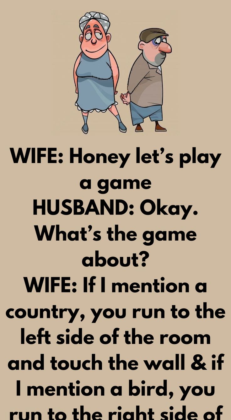 WIFE: If I mention a country, run to the left wall. If I mention a bird, run to the right wall. If you run the wrong way, you’ll give me your entire salary this month.