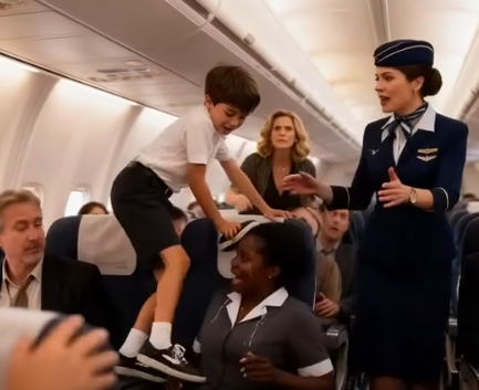The trouble began shortly after takeoff when Amara, a 22-year-old student heading home to Chicago, felt a series of sharp kicks against the back of her seat. She turned politely to the young boy behind her, hoping for understanding, but the situation quickly escalated. Instead of guiding her son, the boy’s mother dismissed Amara’s request and openly blamed her for the disturbance. When a flight attendant calmly stepped in to help, the mother’s behavior worsened, creating tension throughout the cabin and making other passengers increasingly uncomfortable.