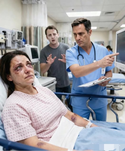 Then the doctor entered—a middle-aged man named Dr. Harris. Calm. Precise. He examined my ribs, my wrists, the yellowing bruise on my neck. He lingered longer than necessary.