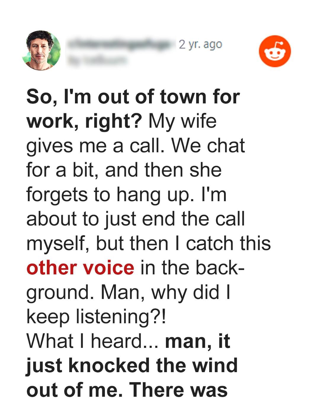 Jeremy went on several business trips, and his wife, Clara, stayed home. But one day, after they talked on the phone, he realized she hadn’t hung up the phone. He heard her friend, Holly, saying some shocking things that Jeremy couldn’t believe.“