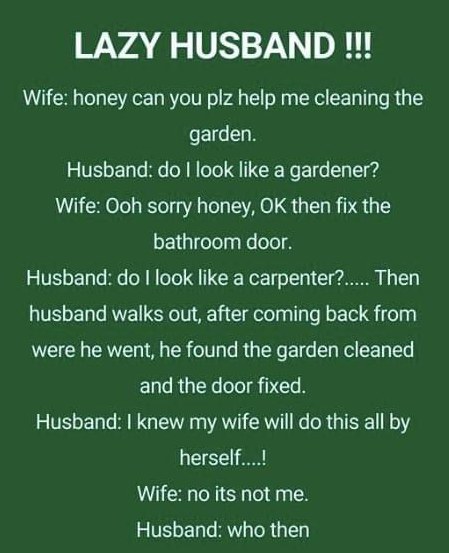 Wife: honey can you plz help me cleaning the garden.