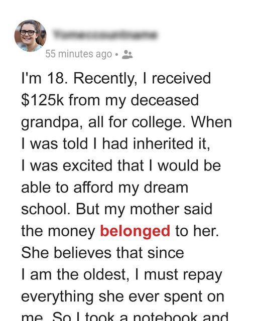 The girl shared that she had a complicated relationship with her parents, which had worsened as she grew up. Inheriting money from her grandfather further exacerbated her relationship with her mother. She explained, “When I tried to get the money transferred to my college savings, I encountered a problem. My mother.”