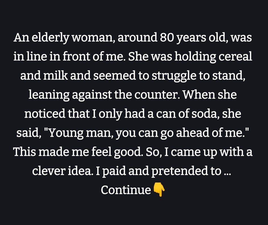 So, I had a smart idea. I paid for my soda and waited near the cash register, pretending to check my phone. When the old lady’s items were being rung up, I quickly asked the cashier to let me pay for her things. The lady was confused, but I paid and left with a smile on my face.