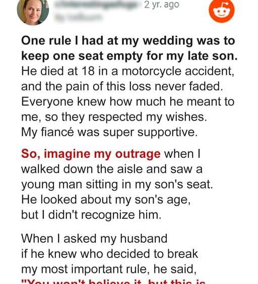 The ceremony was filled with love and happiness, but during the reception, as Jennifer mingled with the guests, she couldn’t help but notice an unfamiliar man occupying the seat meant for Rowley. Her anger flared up – who dared to disrespect her son’s memory? Determined to confront the intruder, she marched over to the seat.