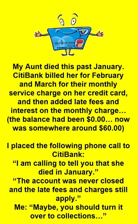 Earlier this year, my dear Aunt passed away in January. The next month, I was shocked to see that CitiBank had billed her for their monthly service charge on her credit card. Not only that, they even added late fees and interest on top of the monthly charge! It’s worth mentioning that the card’s balance was a perfect zero, but now it was around $60. Can you believe it?