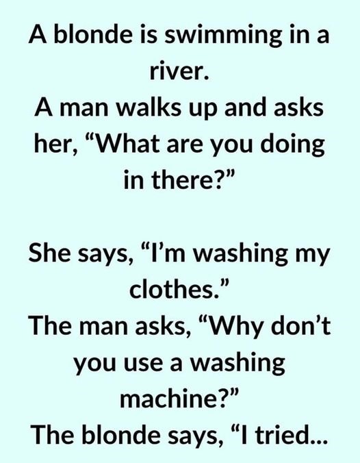 The blonde says, “I tried that, but it was too dizzy.”