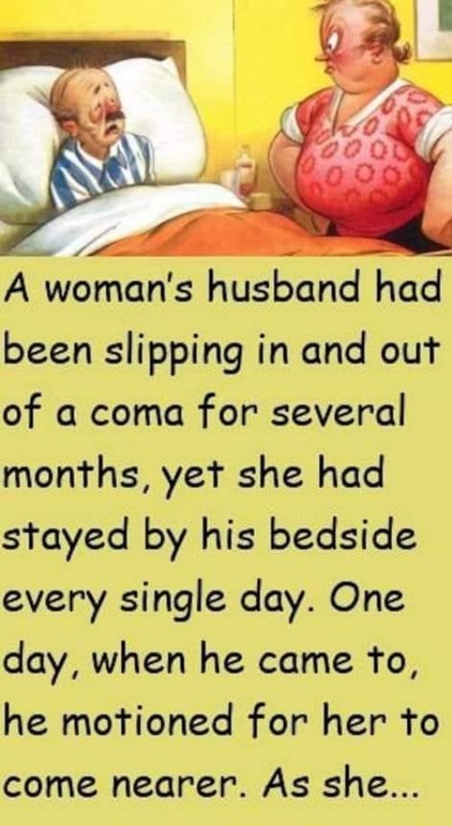 A woman’s husband had been slipping in and out of a coma for several months, yet she had stayed by his bedside every single day….Continue Reading Below In the First C0MMENT